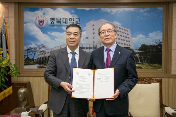在韩国,代表团访问了庆尚大学农业生命科学学院和忠北大学。我校与韩国庆尚大学农业生命科学院于2009年3月正式签署学术交流合作协议,双方先后开展七届现代农业学术研讨会。在庆尚大学农业生命科学学院,与生命科学院院长及孔一根教授的科研团队进行了深入对话交流,双方围绕科研合作、研究生联合培养和学生交流细节进行了具体对接。在忠北大学,校长尹汝杓会见了我校代表团,并签署了两校合作谅解备忘录协议。双方分别介绍了学校的发展历程、办学特色、师资结构、教育国际化进程等内容。席岫峰表示,吉林农业大学与忠北大学已有良好的合作基础,希望以此次签署两校校际合作协议为契机,进一步明确两校的战略合作伙伴关系。