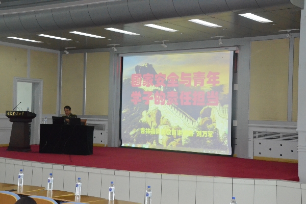 会上,二道区人武部政工科干事闫庶生及我校学生工作处相关工作负责人分别对上级征兵政策和我校征兵政策进行解读;吉林省军区综合训练队副教授刘万军作了题为《国家安全与青年学习的责任担当》的报告。