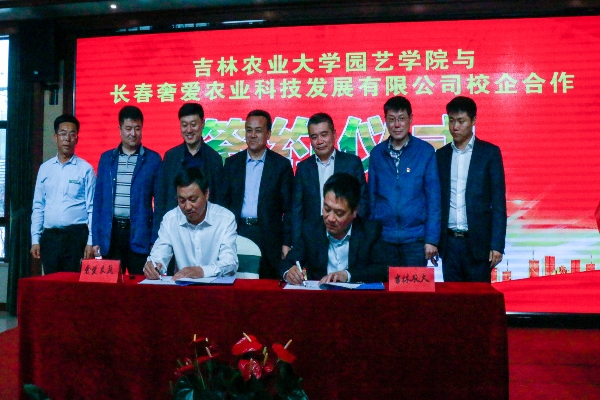 5月6日,我校园艺学院与长春市奢爱良蔬农业发展有限公司举行了院企合作签约仪式。双阳区党委副书记史延文、双阳区副区长李铁钢、双阳区农业局局长刘富强;长春市奢爱良蔬农业发展有限公司李栋梁;我校科技管理处、党委组织部、园艺学院相关工作负责人出席了签约仪式。