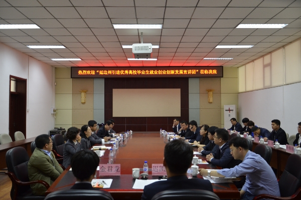 4月26日,延边州委组织部人才工作处处长成冬梅带领延吉、珲春、图们、敦化、龙井、和龙、汪清、安图等八县市组织部负责人到我校开展毕业生招聘专场宣讲会。校党委常委、组织部部长刘洪君会见了成冬梅一行。