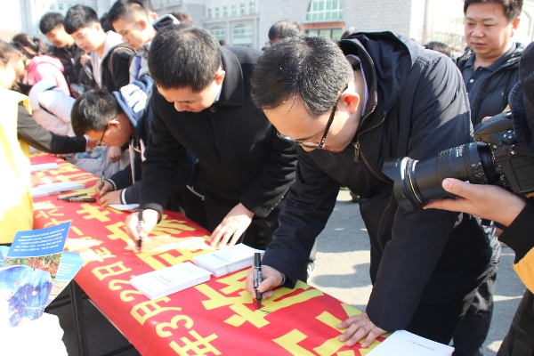 3月22日上午,由我校后勤保障处、校团委共同组织的“节约用水万人签名”宣传活动在综合楼前广场举行。长春市水资源管理中心副主任王洪鑫,长春市水利局邴海英副局长,长春市水利局水政水资源处处长曹雪松,长春市工业与信息化局资源处处长唐宝坤,长春市节约用水管理办公室主任王守杰,我校副校长佟轶材出席了活动。