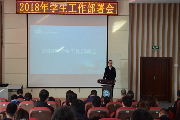 3月15日,学校在学工楼第四阶梯教室召开了2018年学生工作部署会,会议由学校党委副书记毛彦军主持。