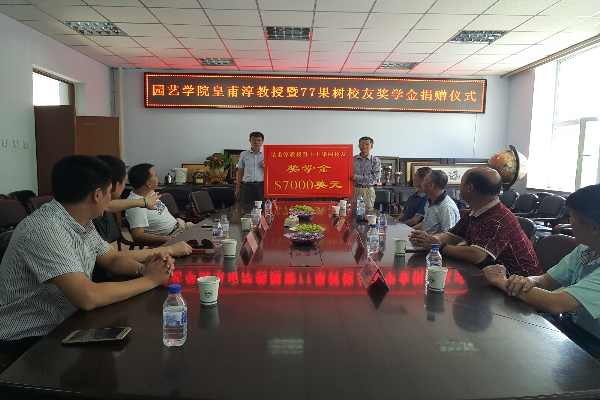 8月3日,园艺学院“皇甫淳教授暨77果树校友奖学金”捐赠仪式在园艺学院学术报告厅举办。校友谭思远在2007年设立的1万美元七七果树奖学金基础上,再次捐赠7000美元。