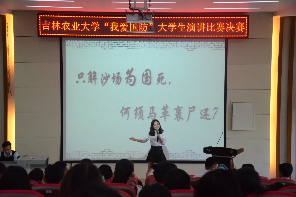 为深入贯彻落实吉林省“传承红色基因、汇聚强军力量”主题教育活动,在我校学生中树立热爱祖国、热爱军队、关心国防、保卫国防的使命意识,激发大学生投身军营、崇军尚武的责任担当, 6月27日,学校在学工楼第四阶梯教室举办了吉林农业大学“我爱国防”大学生演讲比赛。