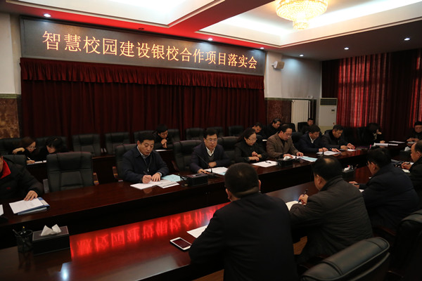 1月5日,学校在主楼中四楼会议室召开了智慧校园建设银校合作项目落实会。校长冯江出席会议并讲话。会议由副校长陈光主持。