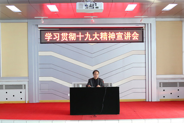 为深入学习宣传贯彻党的十九大精神,12月20日在学校中心教学楼二楼报告厅,学校十九大精神宣讲团成员、校党委副书记徐文生为学校教职工进行了十九大精神宣讲。