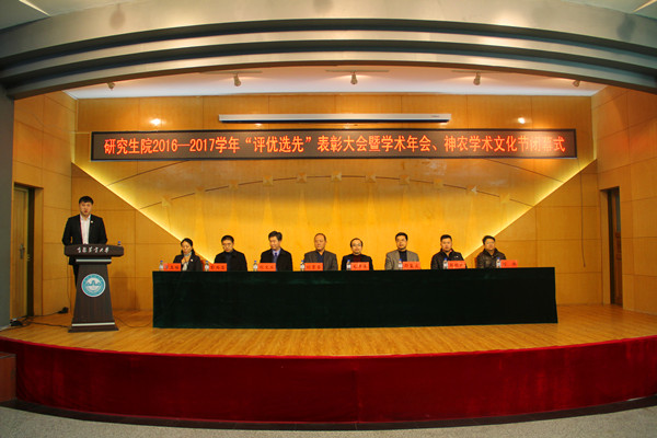 12月20日,研究生院2016—2017学年 “评优选先”表彰大会暨学术年会、神农学术文化节闭幕式在中心教学楼一楼报告厅举行。校党委副书记毛彦军、副校长刘景圣出席了会议。