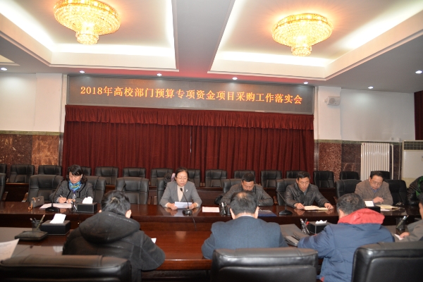 12月13日上午,学校在主楼中四楼会议室召开了2018年高校部门预算专项资金项目采购工作落实会。会议由副校长陈光主持。