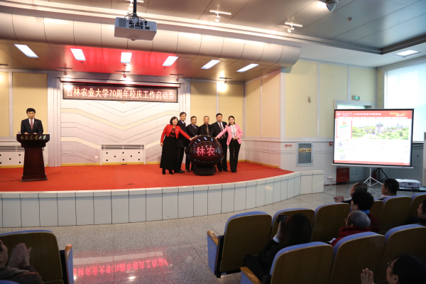 会上,校党委书记席岫峰宣布学校70周年校庆工作启动。席岫峰、郭庆海、秦贵信、吴兴宏与教师代表李海燕、学生代表王佳琦共同触按学校70周年校庆工作启动球,同时开通学校70周年校庆网站。