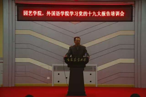 艺林轩讲堂邀请了学校关心下一代工作委员会委员梁青岭为园艺学院师生作了《让青春与红色共舞,把梦想写在青春激扬的土地上》为主题的报告;园艺学院党委书记梁俊带领全院教职工进行了一次《关于党的十九大精神》集体学习;园艺学院团委大力营造良好校园文化氛围,宣传十九大精神,唱响主旋律,弘扬正能量,举办了党团知识竞赛、安全知识竞赛、班徽征集大赛,篮球比赛等文化活动,全院青年热情高涨、积极参与,在全院形成庆祝十九大、永远跟党走的浓厚氛围。