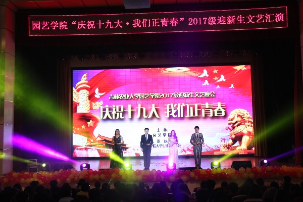 园艺学院在鲲鹏学生文化活动中心举办“庆祝十九大,我们正青春”2017级迎新晚会。校党委副书记毛彦军,校团委书记彭雨石,园艺学院党委书记梁俊,园艺学院王连君出席了此次活动。诗朗诵《同一个梦想》唱响了十九大的壮丽高歌;哑剧《在你身边》带着吉农志愿者烈火般的赤诚,诠释了党为人民服务的至上宗旨。悠扬的乐曲、绚丽的舞姿,将晚会的浓热氛围推向高潮。