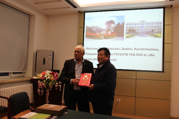 讨论会结束后,李玉院士向朱拉夫列夫院士、俄罗斯科学院远东分院联邦东亚陆地生物多样性科学中心布拉赫教授颁发了食药用菌教育部工程研究中心客座教授聘书。朱拉夫列夫院士和布拉赫教授应邀分别做了题为《大陆和海洋交接地带动植物资源简介》《俄罗斯远东地区的食药用菌资源》的主题报告。