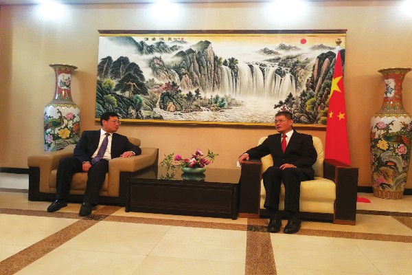冯江校长与中国驻赞比亚大使杨优明举行会谈
