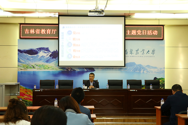 9月28日,省教育厅人事处党支部联合在长省属高校人事处党支部在我校“生命之光”红色教育基地开展“庆祝国庆节,喜迎十九大”主题党日活动,活动邀请我校党委书记席岫峰作了题为《领导干部作风建设与执行力提升》的专题辅导报告。报告会由省教育厅人事处处长曲跃年主持。