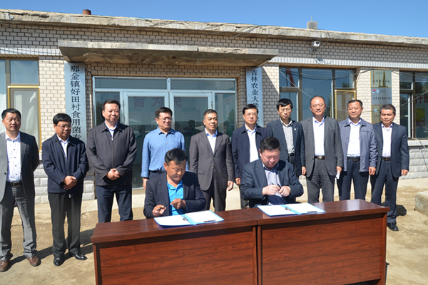 会后,席岫峰、冯江与费建伟、王天昊还为“吉林农业大学科技扶贫示范基地”“那金镇好田村食用菌合作社”揭牌,学校扶贫工作办公室负责人与那金镇好田村村委会负责人签署了校村共建合作社的协议。