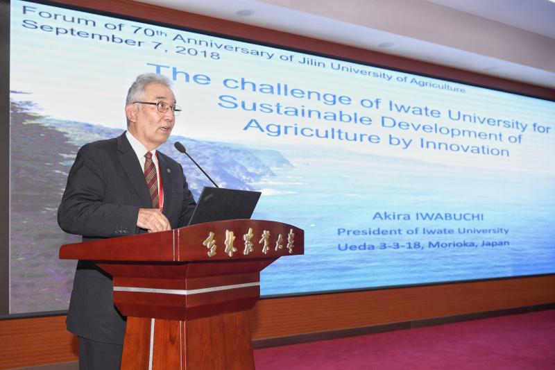 9月7日,我校在中心教学楼一楼报告厅举办了主题为“新时代农业大学建设与国际化”中外大学校长论坛,此次活动是庆祝吉林农业大学建校70周年系列学术活动之一。安徽农业大学校长程备久教授、赞比亚大学校长卢克•伊乌塔•穆恩巴教授、日本岩手大学校长岩渕明教授、美国东南俄克拉荷马州立大学校长迈克尔·肖恩·伯雷奇教授、四川农业大学副校长陈代文教授;我校党委书记席岫峰教授、校长冯江教授出席了活动。本次论坛中外校长就未来高等农业教育发展与国际化建设作主旨演讲。论坛由我校副校长张越杰教授主持。