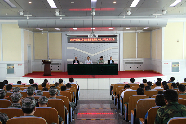 会上,学生工作处处长、武装部部长董雅致对2017年征兵工作做了总结;人文学院党委副书记倪海军和工程技术学院辅导员崔强分别代表征兵工作先进单位及个人作了发言;生命科学学院2016级奈子达同学代表退役大学生介绍了自己军旅生活。