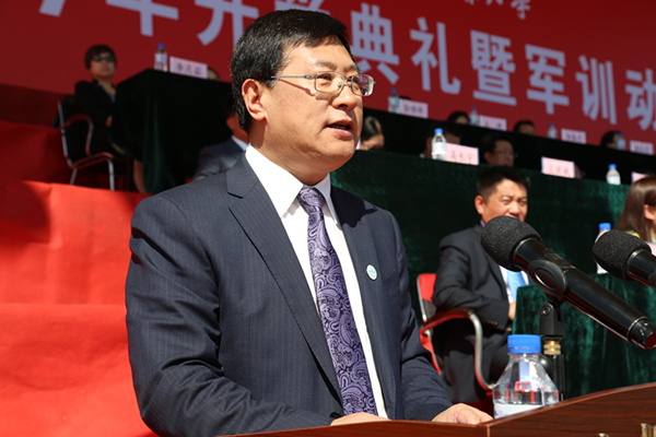 他以吉农校训,向新生提出4点希望:希望新同学走“明德”之路,坚持追求进步,能够坚守信仰,守望良知,慎独慎微,修己立人,不见利忘义,不随波逐流,在培养高尚品德的道路上,不断完善人格、走向成熟;扬“崇智”之帆,坚持追求真知,以一丝不苟的态度认真完成每一门课程、每一次实验、每一个报告、每一次实习,在努力汲取知识养分的基础上,更加注重时刻保持思想活跃,培养自己不断探索求知、批判创新的理性思维方式;希望你们养“厚朴”之魂,坚持追求崇高,从培养高雅兴趣爱好、养成良好生活习惯做起,认真求学、踏实做事、不慕虚荣、不尚浮华,做一名有理想、有追求、有品味的时代公民;希望你们化“笃行”之力,坚持追求奉献,能够学以致用,积极参与课内外各类丰富多彩的有益活动,积极开展生涯规划、科技创新和自主创业,积极投身服务祖国、服务地方、服务社会、服务“三农”的实践之中,以情系大众、兼济天下的仁者情怀,在实现中华民族伟大复兴的中国梦中成就个人梦想。