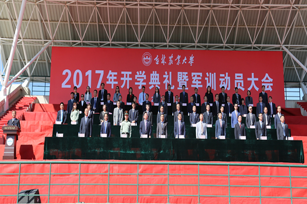 校长助理曲政文,校党委常委、组织部部长刘洪君,学校相关部门负责人,各学院党委(党总支)书记、院长,学生工作人员及2017级全体新生参加了开学典礼。