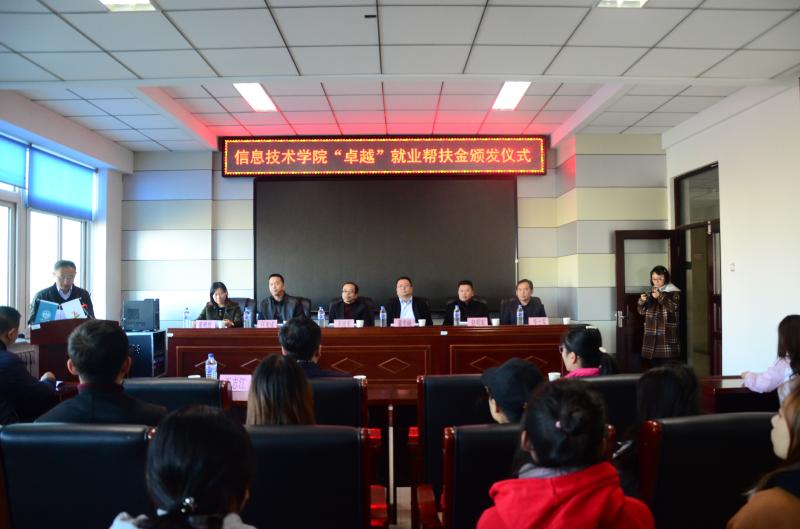 11月1日,信息技术学院“卓越”就业帮扶金颁发仪式在学院三楼学术报告厅举行。校党委副书记毛彦军,学院优秀校友、吉林省卓越科技有限公司总经理董雪峰出席了会议。