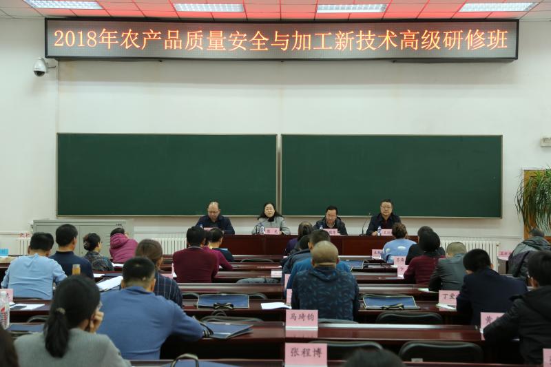 11月26日, 2018年农产品质量安全与加工新技术高级研修班在继续教育学院118教室举行。农业农村部农产品质量安全监管司监督处调研员徐观华,吉林省农业农村厅农产品质量安全监管处处长王军,我校副校长陈光出席了开班仪式。