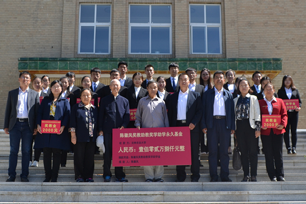 仪式上,陈徽凤老师为获得2016—2017学年陈徽凤奖教助教奖学助学金的师生颁发了奖助金并发言,讲述了自己的人生历程,表达了捐赠初衷。他说,1956年从东北农学院毕业后,来到北安农学院,也就是吉林农业大学工作, 1977年9月,离开了吉林农大,调到福建农林大学,回到了老家福建。今年86岁,在吉林农业大学工作了21年,占了生命的1/4,和同志们结下了深厚友谊,对学校也怀有浓厚的感情。这些年来心里一直想着吉林农大,想着吉林农大农学系的教工们,也想做一些公益,为学校做点事。陈老师说,他捐赠的动机有两点,第一点就是感恩,感谢吉林农大对自己的培养,给自己提供优越的生活条件和良好工作环境,给了自己一段重要的人生经历;第二点是社会责任心,也是每个公民必须具备的爱心和善心,因为它是责任,所以要自觉去履行,而且是无条件地去执行。捐资奖助优秀或困难的师生,重在鼓励大家,希望对他们有帮助和促进作用,这就是最好的回报。