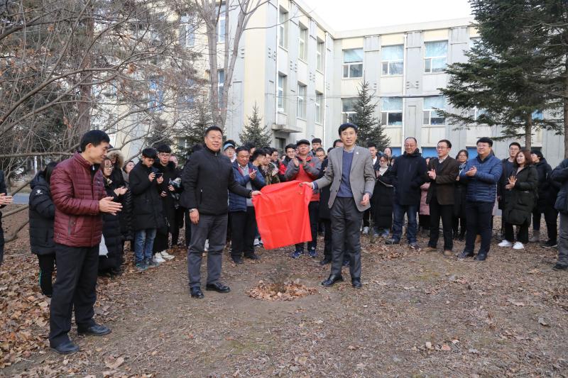 仪式结束后,张越杰分别与武福军、刘际平为康鑫桥和红豆杉树揭幕。