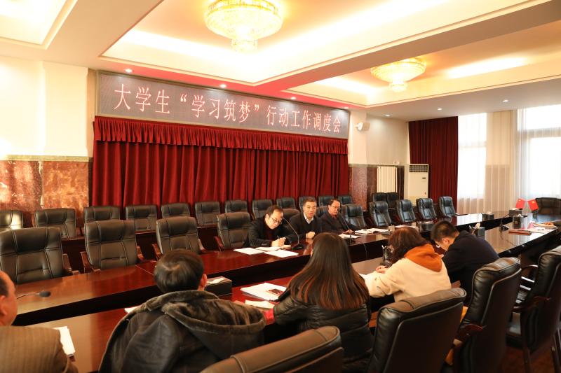 12月18日,学校在主楼中四楼会议室召开大学生“学习筑梦”行动工作调度会。党委书记席岫峰,党委副书记徐文生出席了会议。会议由党委副书记毛彦军主持。