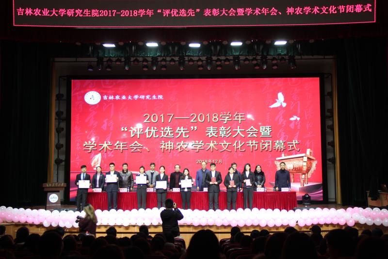 12月20日,研究生院2017-2018学年“评优选先”表彰大会暨学术年会、神农学术文化节闭幕式在鲲鹏学生文化活动中心举行。校党委副书记毛彦军,副校长刘景圣出席了会议。会议由研究生院负责同志主持。