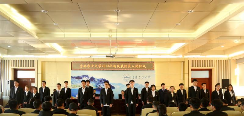 入团仪式上,宣读了新发展团员名单;2017-2018学年优秀团员为新发展团员代表佩戴团徽;校团委相关负责同志带领新团员宣誓和宣读《团章》。老团员代表经济管理学院焦馨慰、新团员代表资源与环境学院王俊贤分别发言。