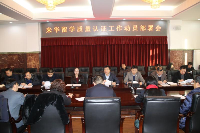 1月9日上午,学校来华留学质量认证工作动员部署会在主楼中四楼会议室召开,校长冯江参加会议并作了讲话,会议由副校长张越杰主持。