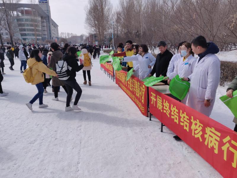 3月22日上午,在第24个“世界结核病日”到来之际,为切实做好学校结核病防控宣传教育工作,做到学校师生结核病宣传全覆盖,校医院围绕 “开展终结结核病行动,共建共享健康中国”宣传主题,在综合楼前举行了大型现场咨询、发放结核病宣传资料等活动。