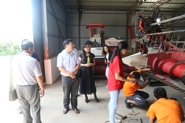 座谈会后,冯江深入企业参观并慰问了正在维修现代农业机械的社会实践学生。