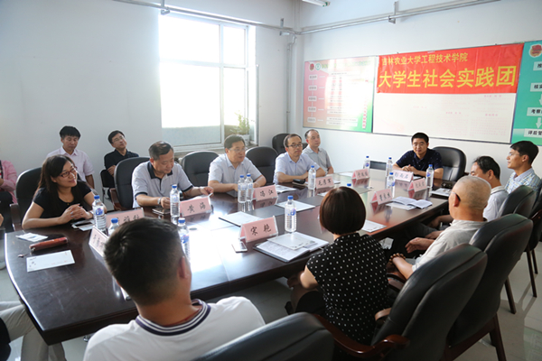 九台雨田生态米业有限公司董事长李雨田对冯江一行表示欢迎,并对我校师生多年来为企业发展做出的贡献给予高度评价;工程技术学院负责同志介绍了校企共建情况和大学生社会实践情况;社会实践师生代表分别作了发言;李雨田代表公司向学校赠送了锦旗。
