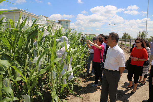 座谈会后,席岫峰深入到服务团实践现场慰问了正在为玉米授粉套袋的社会实践学生。