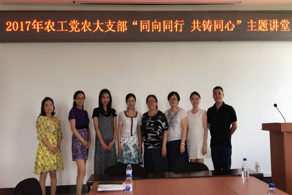 7月7日,农工党农大支部在外国语学院三楼会议室开展了“同向同行 共铸同心”主题讲堂活动。校农工党全体党员、党委统战部全体成员参加了活动。