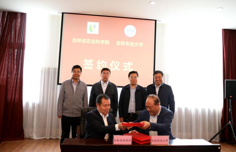 会上,刘景圣和郭中校签署了《吉林农业大学与吉林省农业科学院共建作物学学科协议》。