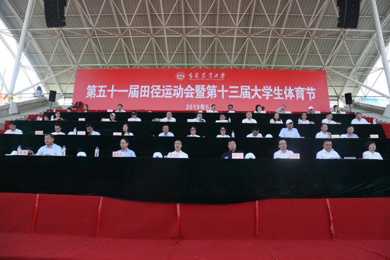 5月24日,学校在第二运动场举办第五十一届田径运动会暨第十三届大学生体育节。校领导席岫峰、冯江、张越杰、徐文生、毛彦军、刘景圣出席大会。