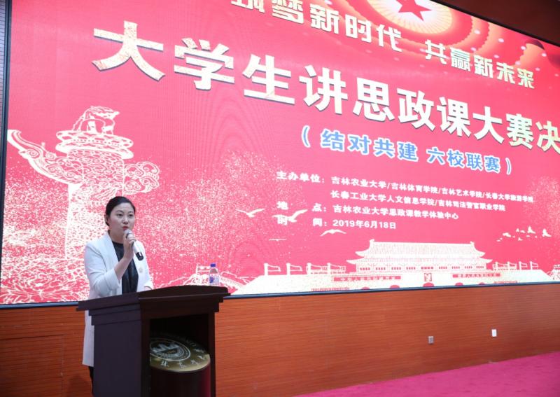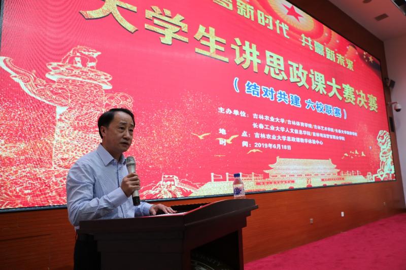 为深入贯彻落实全国高校思想政治工作会议精神和习近平总书记在学校思想政治理论课教师座谈会上的讲话精神,按照吉林省教育厅《吉林省高校重点马克思主义学院与其他高校结对共建活动方案》安排,吉林农业大学马克思主义学院与吉林艺术学院、吉林体育学院、长春工业大学人文信息学院、长春旅游学院、吉林司法警官职业学院等六所院校的马克思主义学院于2019年6月18日开展“筑梦新时代 共赢新未来 结对共建 六校联赛 大学生讲思政课大赛决赛”及“筑梦新时代 共赢新未来 六校结对共建教学观摩”活动。学校党委副书记徐文生出席活动,长春工业大学人文信息学院党委副书记周丹出席活动并宣读获奖名单。