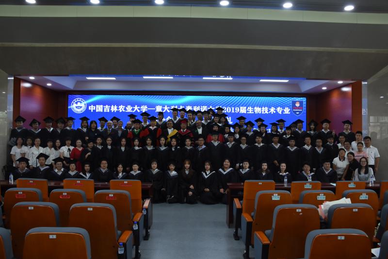 生命科学学院班子成员,中意双方授课教师,我校教务处、国际合作与交流处相关部门负责同志,中意合作办学生物技术专业学生及毕业学生家长代表参加了毕业典礼。