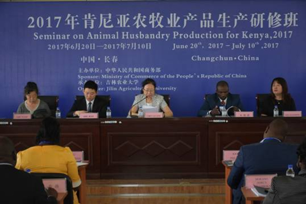 6月21日,由国家商务部主办,我校承办的 2017年肯尼亚农牧业产品生产研修班开班典礼在学校理科楼报告厅举行。副校长陈光,吉林省商务厅对外投资和经济合作处朱健出席了开班典礼。