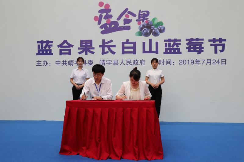7月24日,在“中国·靖宇‘蓝合果’长白山蓝莓节”开幕式上,吉林农业大学与靖宇县签订校县合作协议。学校党委书记席岫峰、副校长张越杰和白山市人大常委会副主任、靖宇县委书记毕增祥,县人大常委会主任邓燕,县委副书记、县长全洪宝,我校优秀校友、县政协主席于炜修等出席了签约仪式并参加“蓝合果”长白山蓝莓节开幕式。