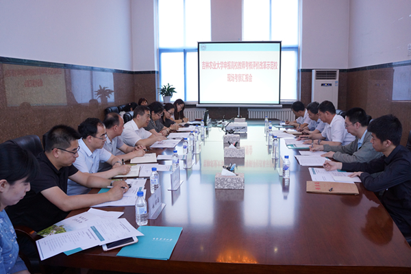为深化高等教育领域综合改革,破除束缚高校教师发展的体制机制障碍,激发高校教师教书育人、科学研究、创新创业活力,教育部组织高校教师考核评价改革示范校遴选工作,以鼓励高校强化教师评价与考核机制建设,促进教师专业发展。我校作为省教育厅确定的两所省属高校推荐对象之一,于6月19日下午接受了省教育厅组织的现场考察。考察组由省教育厅潘永兴副厅长一行5人组成,校党委书记席岫峰接待了考察组成员并出席考察汇报会。考察汇报会由副校长陈光主持。