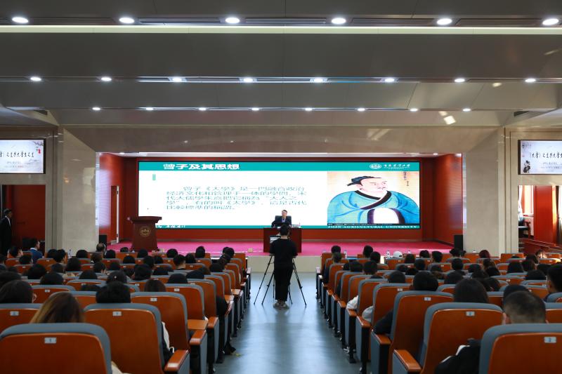 崔永军从曾子及其思想、《大学》之道、大学生之道等方面与现场师生进行分享。他在报告中表示,知礼、知史、知人,方可知天下;克己复礼为仁,乐在其中。他希望青年学生“风声雨声读书声,声声入耳;家事国事天下事,事事关心”,将自己的梦融入中国梦,在新时代美丽中国绽放青春光彩。活动最后,全场师生共同诵读《少年中国说》。