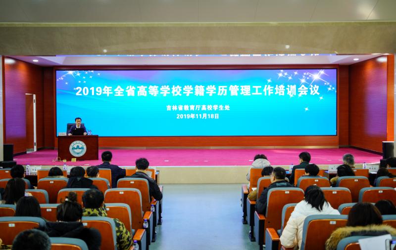 为贯彻落实全国、全省教育大会精神及2019年全国普通高等教育学籍学历管理工作会议精神,进一步推进《普通高等学校学生管理规定》(教育部令第41号)落实,提升高校学籍学历管理规范化水平,11月18日,由吉林省教育厅高校学生处主办,我校承办的2019年全省高等学校学籍学历管理工作培训会议在我校中心教学楼一楼报告厅举行。会议由省教育厅高校学生处处长宁宝忠主持。