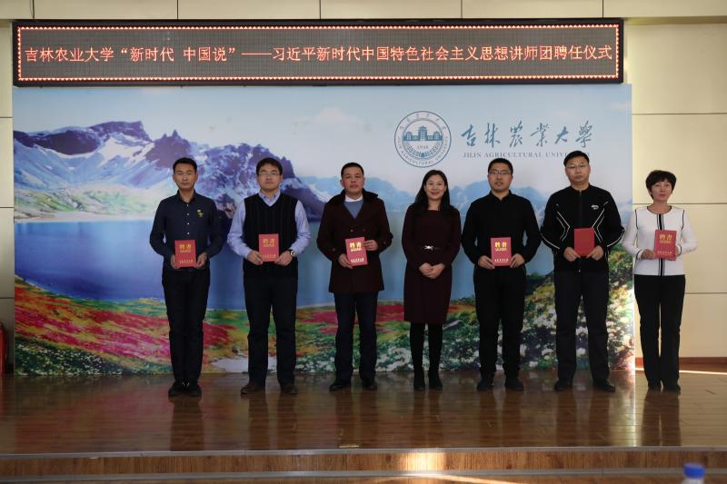 聘任仪式上,学生工作部(处)相关负责同志宣读了《关于成立吉林农业大学“新时代 中国说”——习近平新时代中国特色社会主义思想讲师团的决定》,学生工作部(处)负责同志为讲师团成员颁发聘任证书。