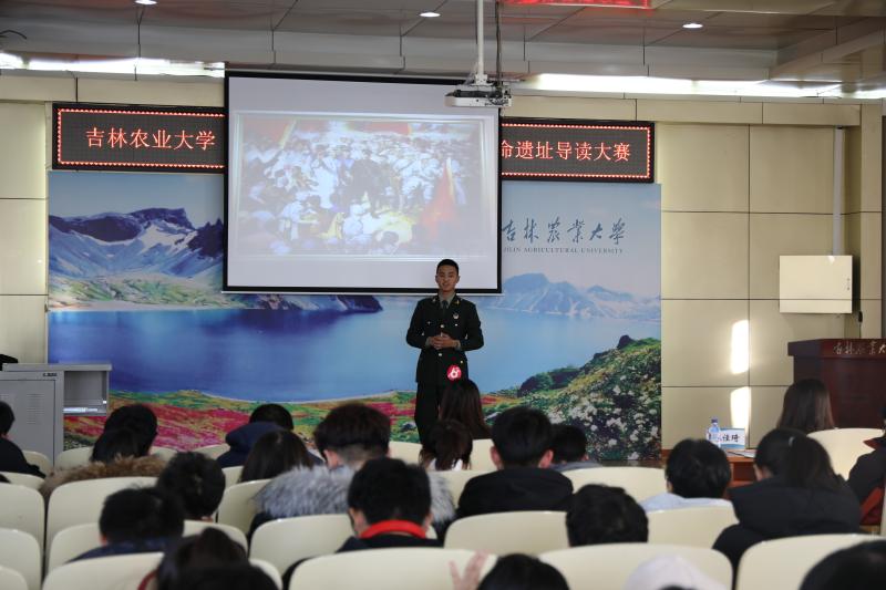 为深入学习宣传习近平新时代中国特色社会主义思想和党的十九大精神,传承革命文化和社会主义先进文化,12月4日,学校在红色教育基地举办了吉林农业大学“新时代 中国说”——习近平新时代中国特色社会主义思想讲师团聘任仪式暨“不忘初心,沿途寻梦”红色革命遗址导读大赛。