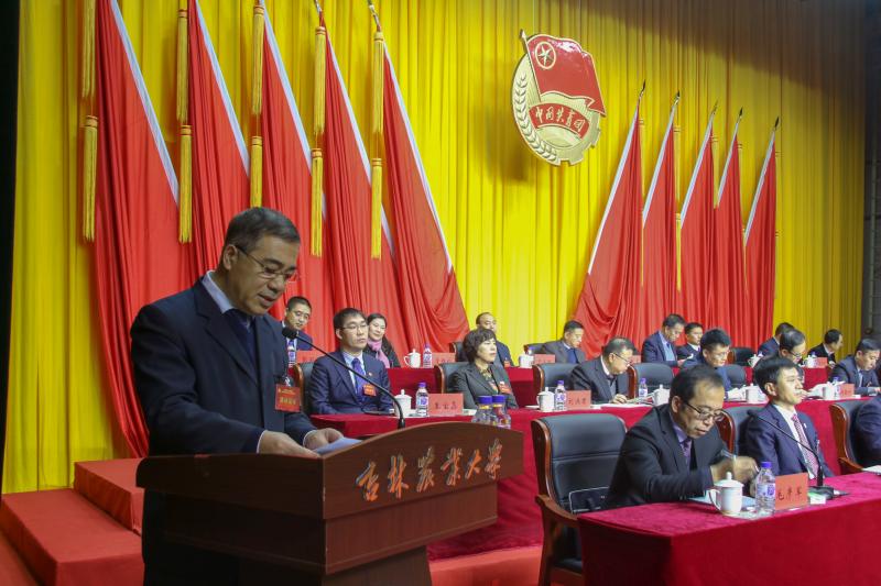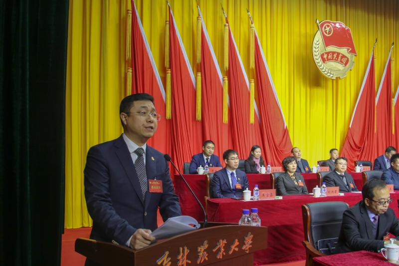 李忠双代表共青团吉林省委祝贺大会胜利召开。他对吉林农业大学共青团工作给予了充分肯定并对共青团工作提出三点意见:要聚焦思想引领主业,坚持以习近平新时代中国特色社会主义思想武装青年学生;要融入学校育人大局,坚持服务青年学生全面成长成才;要落实从严治团要求,坚持提升基层团组织的吸引力和凝聚力。