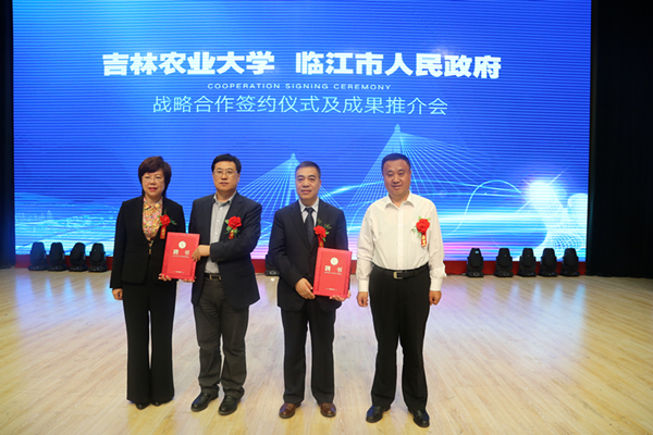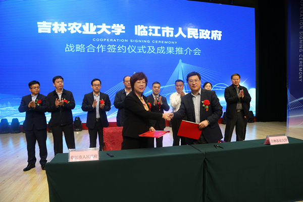 冯江、刘宝芳分别代表吉林农业大学、临江市政府签订战略合作协议