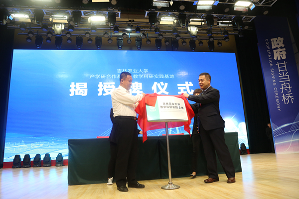 席岫峰、钟铁鹏共同为“吉林农业大学教学科研实践基地”揭牌